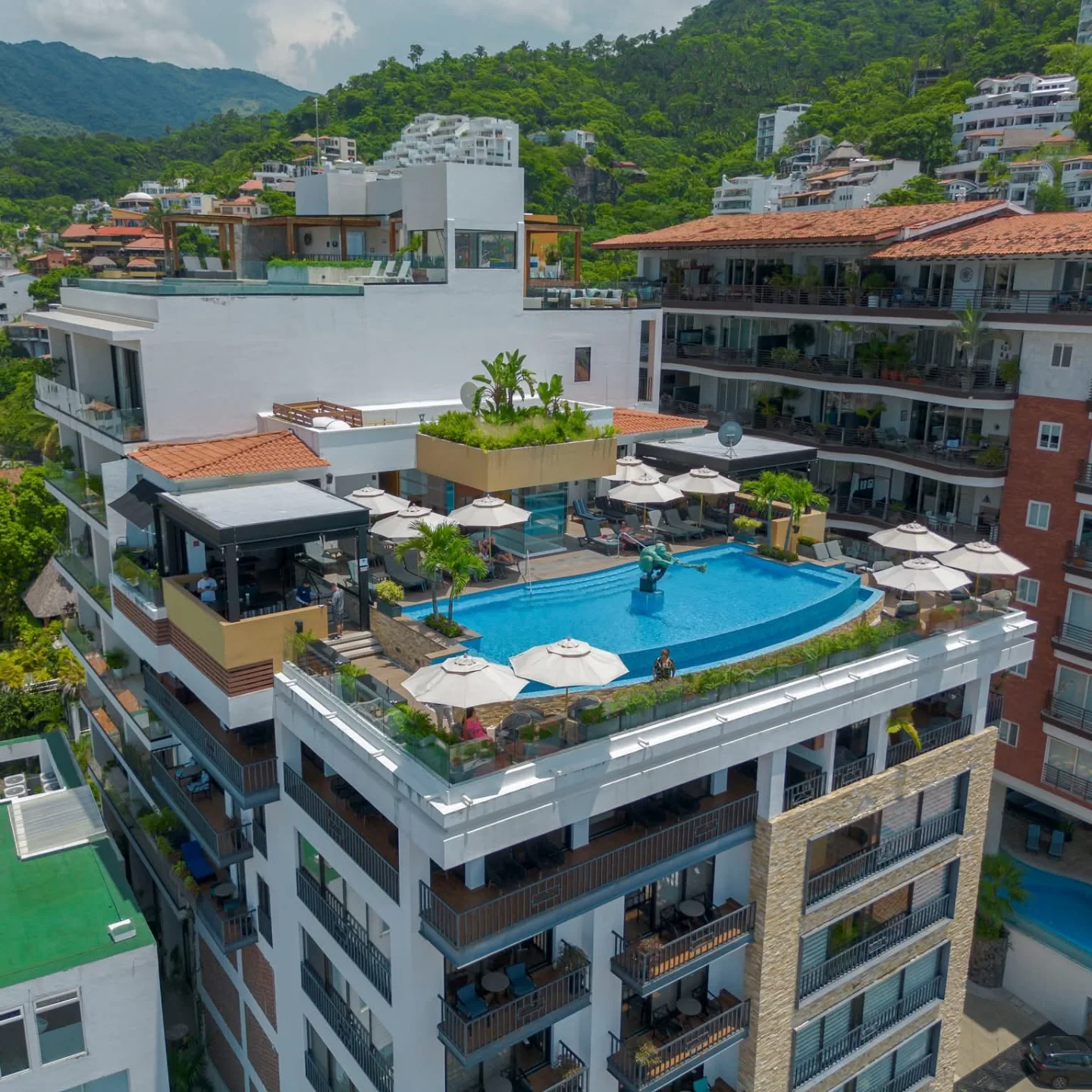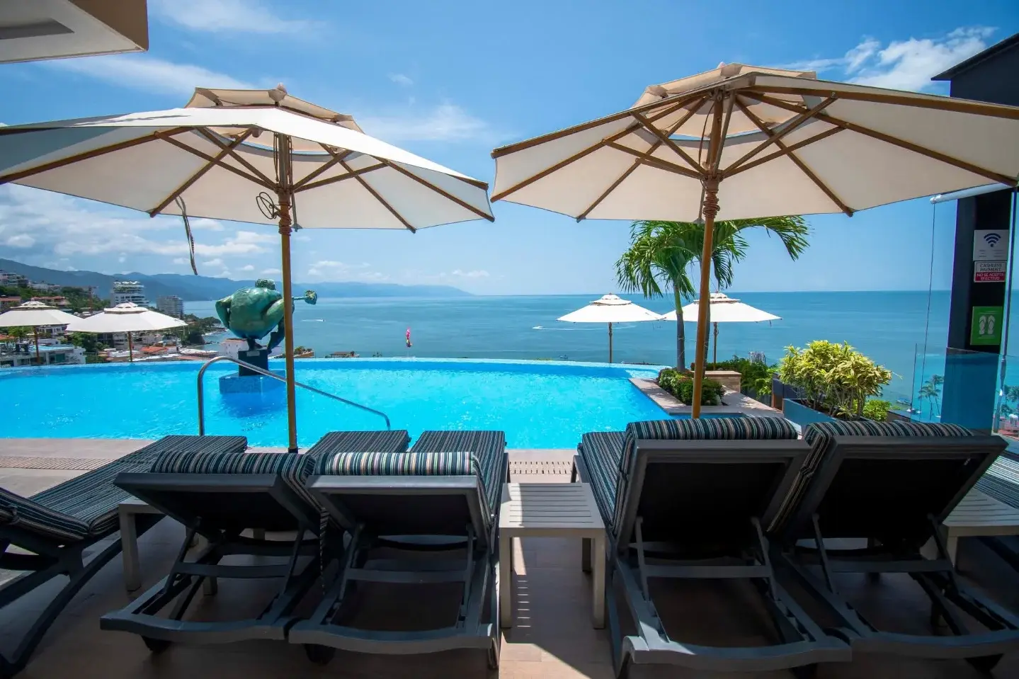 Ubicado en una azotea; tenga precaución cerca del borde de la piscina y las barreras de vidrio.