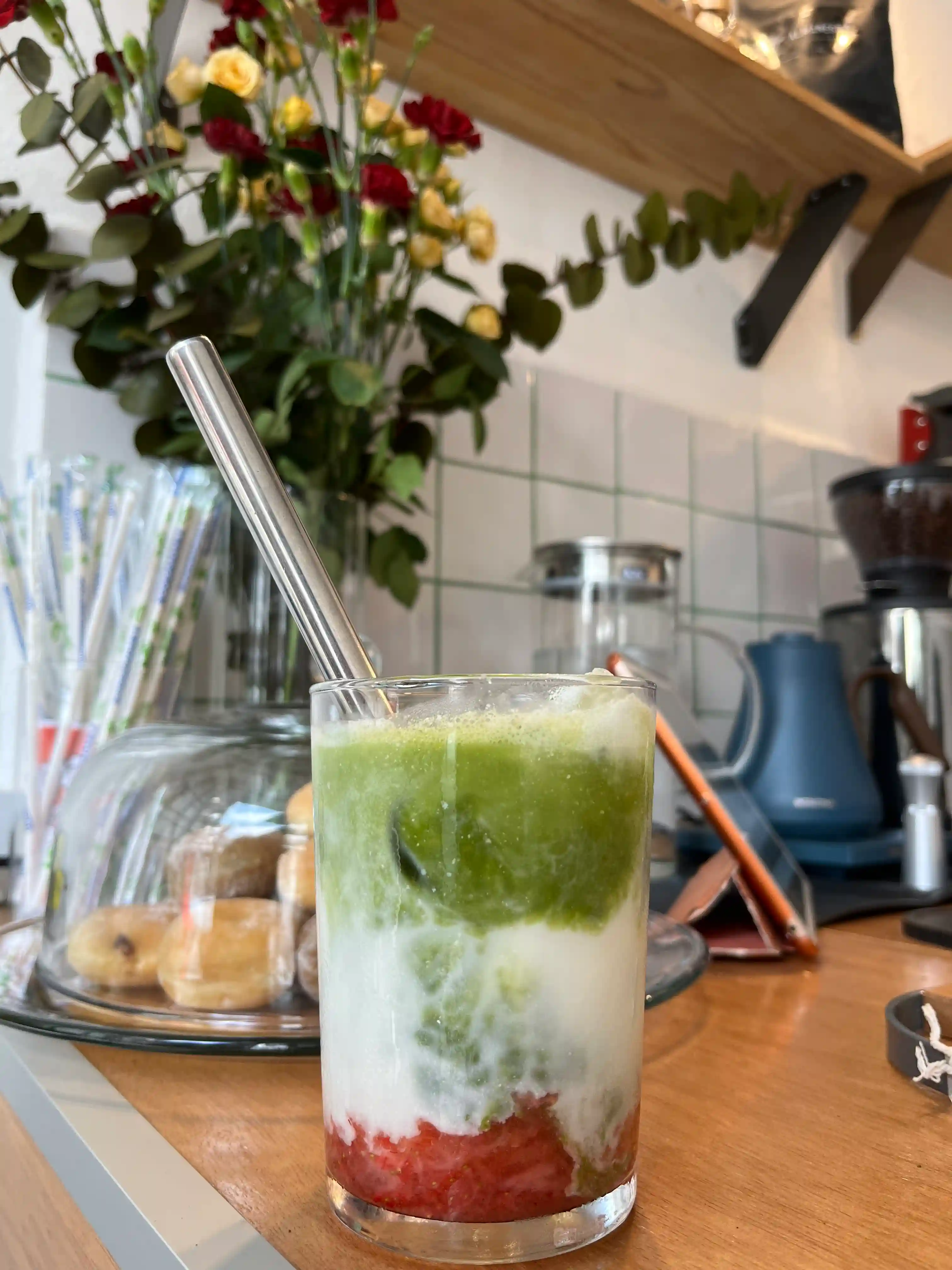 El Matcha Latte es balanceado y suave. Las versiones Strawberry y Coco tienen un toque más dulce y tropical.