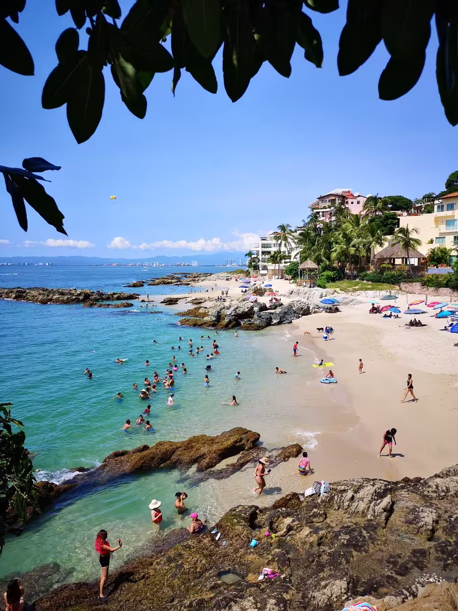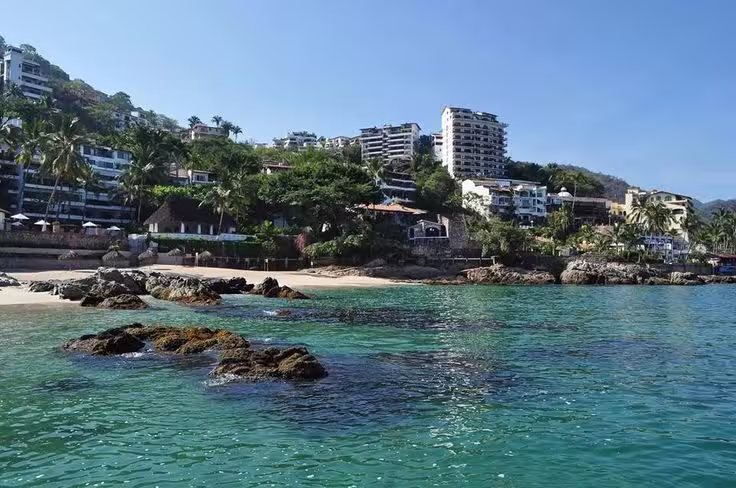 Ubicada justo al sur de la Zona Romántica, Conchas Chinas es una de las playas más hermosas y aisladas. Es famosa por sus pozas naturales de roca que se forman durante la marea baja, creando áreas tranquilas para nadar. La arena es más gruesa y está mezclada con pequeñas conchas marinas, lo que le da su nombre. Es favorita para bodas y escapadas románticas debido a su impresionante paisaje.
