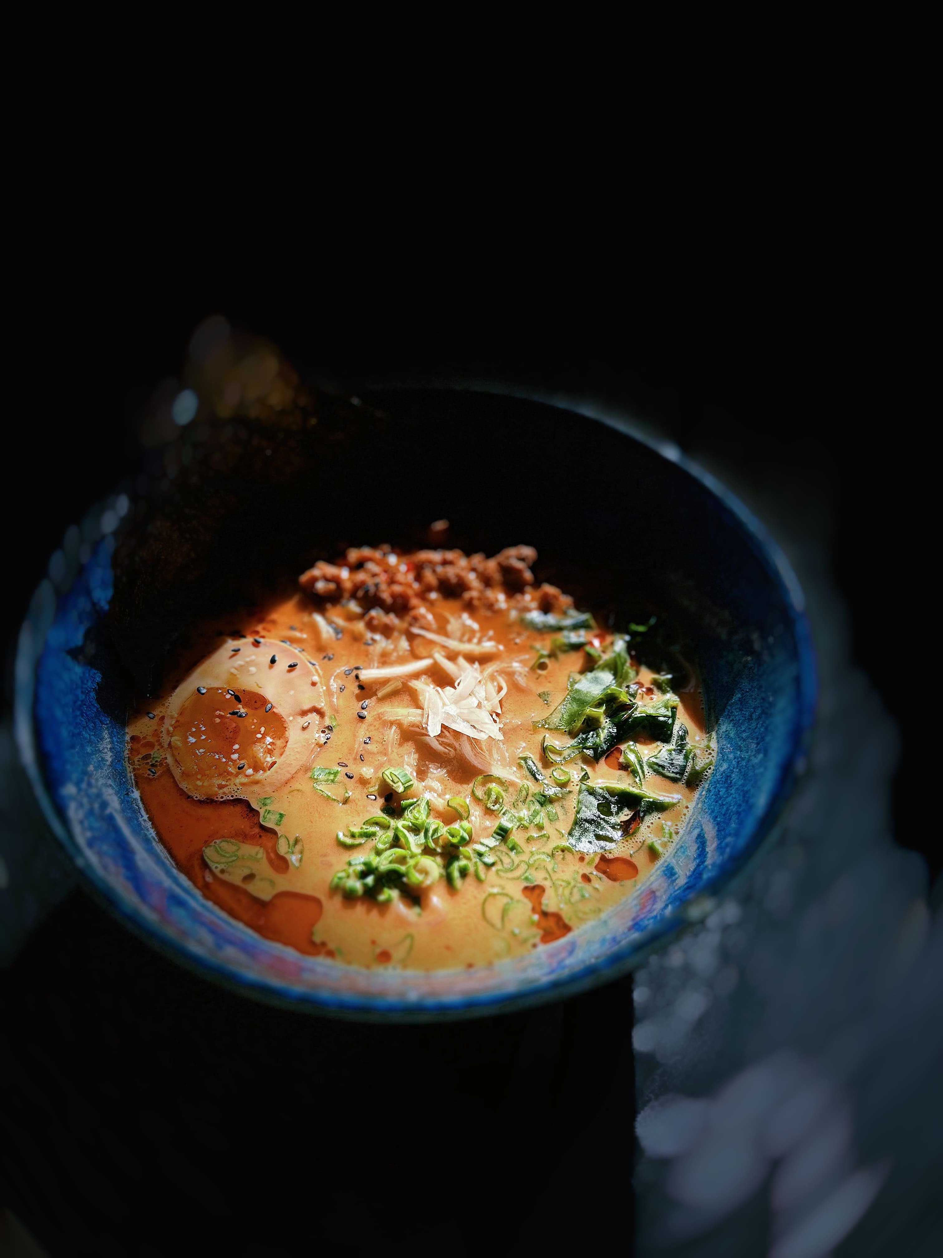 Nuestro ramen artesanal destaca por nuestros fideos frescos, hechos a diario para lograr una textura inigualable. Cocinamos el caldo a fuego muy lento para extraer un profundo sabor a umami, creando una base rica, compleja y memorable.